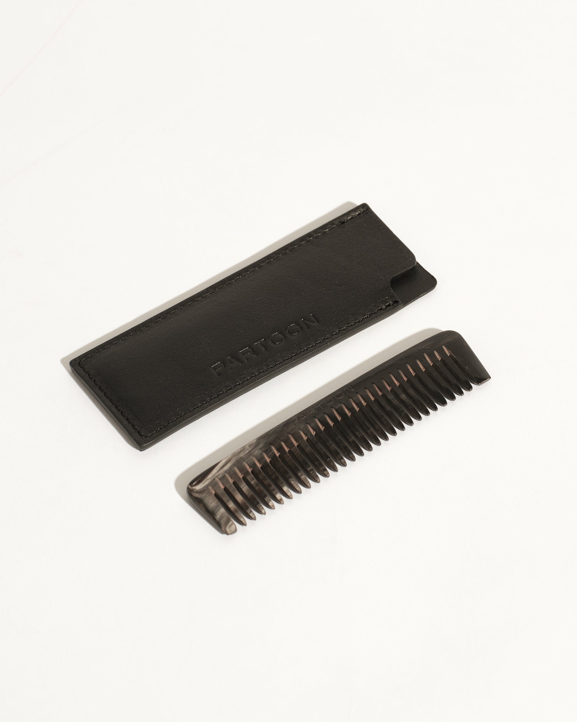 The Jane Comb is handcrafted from cow horn in England, it comes with a Partoon embossed leather pouch made from premium Italian cow leather. Horn combs improve the shine and body of your hair by collecting the natural oils from your scalp and distributing them through your hair, these oils will also help to keep your horn comb nourished. The petite comb is designed to perfectly fit in your Partoon handbag.