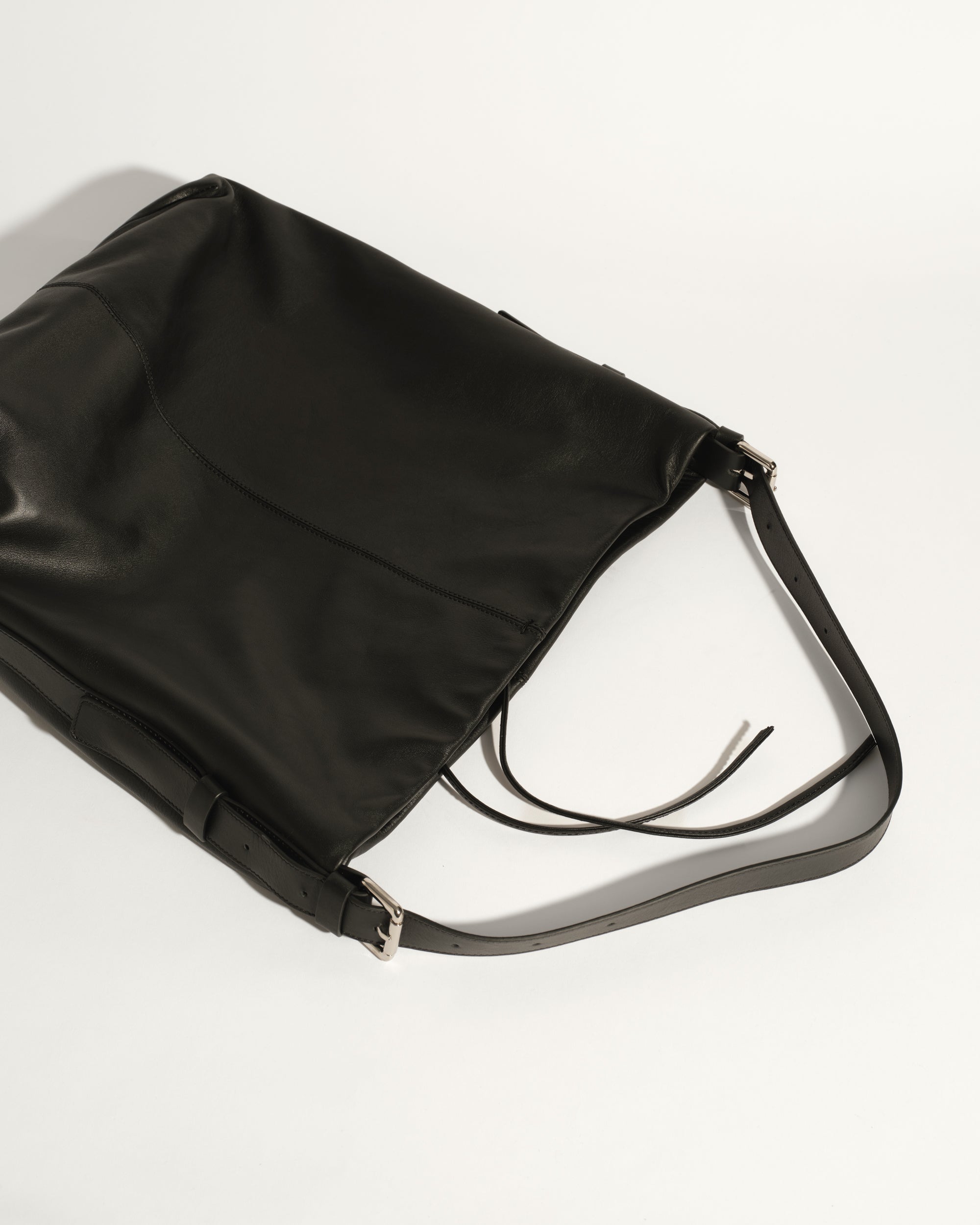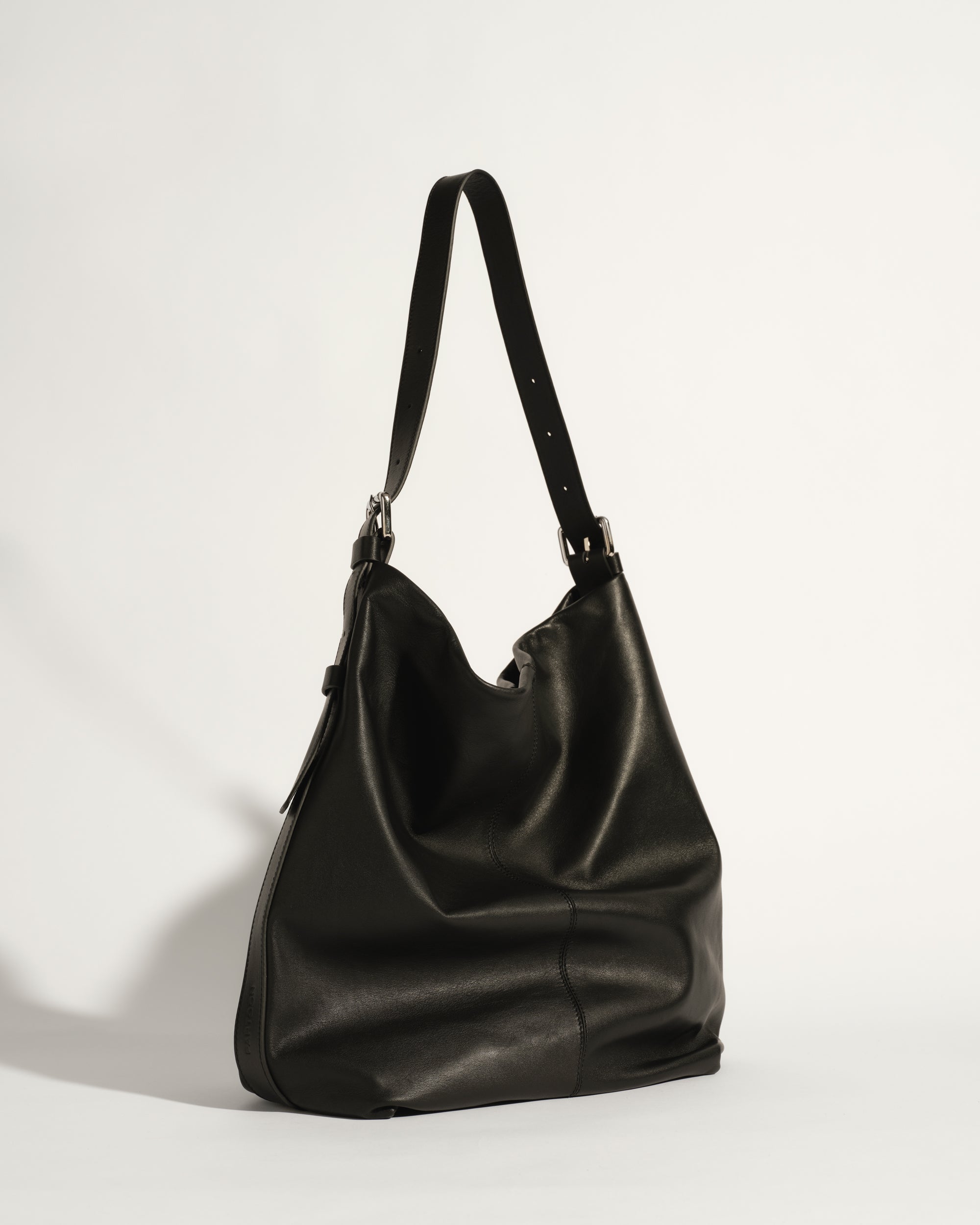 The sculptural Remi tote bag is made from cow leather with two silver buckles and an adjustable shoulder strap. Designed to carry everything you need, including a 13 inch laptop, the bag balances masculine and feminine with its soft body and bow tie closure. Lined with cotton, the bag features a large, leather trimmed internal pocket with Partoon’s signature, woven label hand-tacked on.