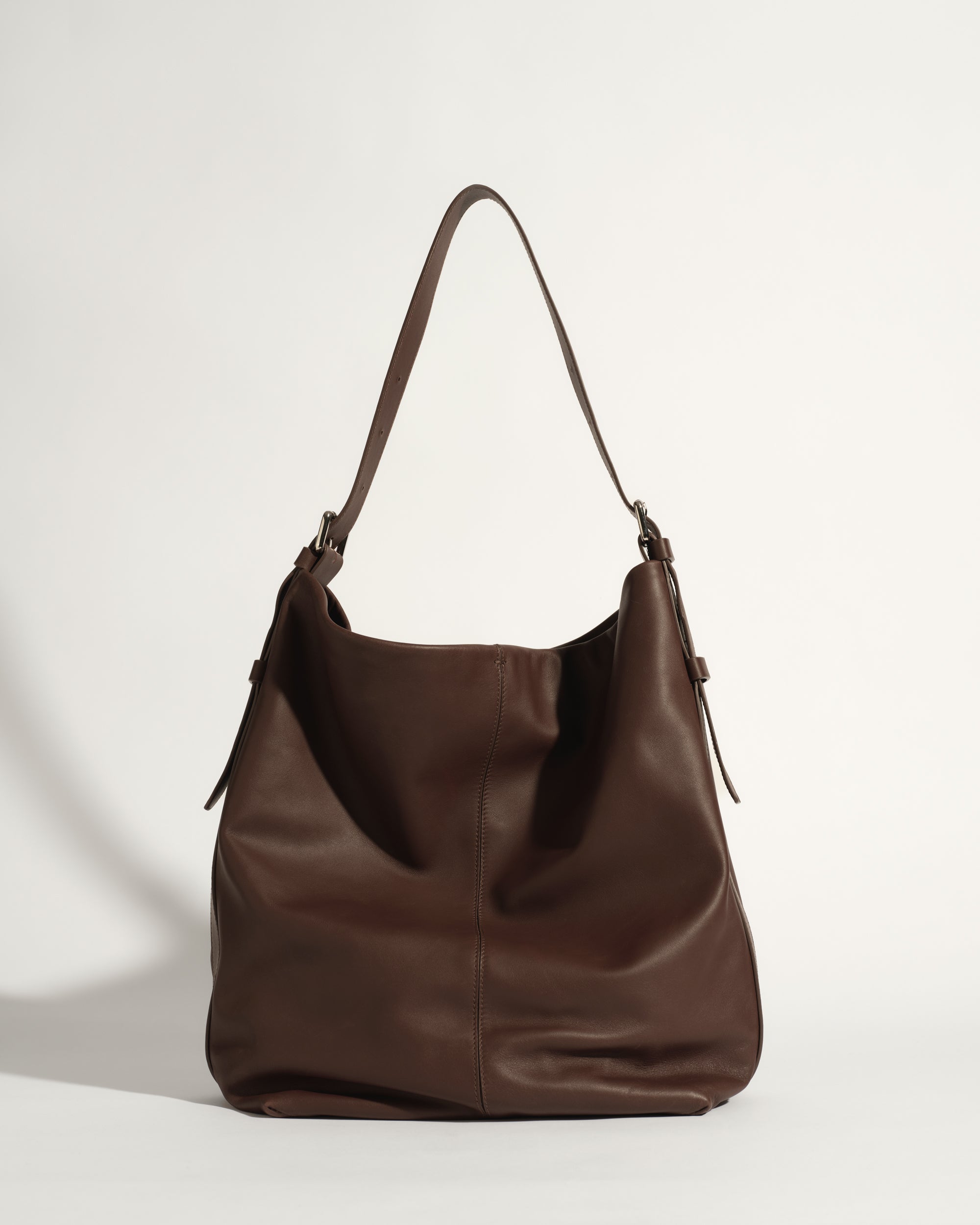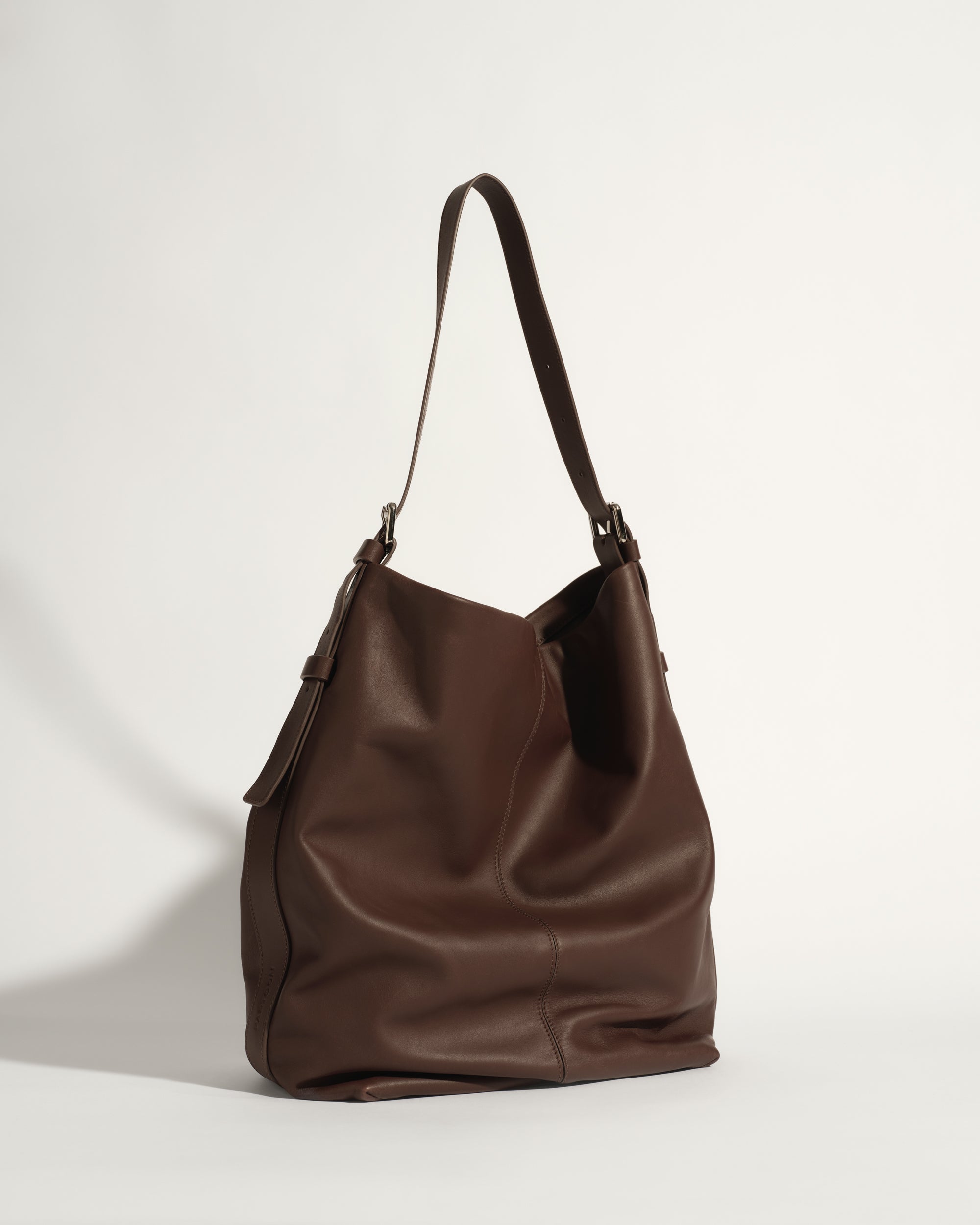 The sculptural Remi tote bag is made from cow leather with two silver buckles and an adjustable shoulder strap. Designed to carry everything you need, including a 13 inch laptop, the bag balances masculine and feminine with its soft body and bow tie closure. Lined with cotton, the bag features a large, leather trimmed internal pocket with Partoon’s signature, woven label hand-tacked on.